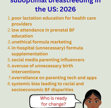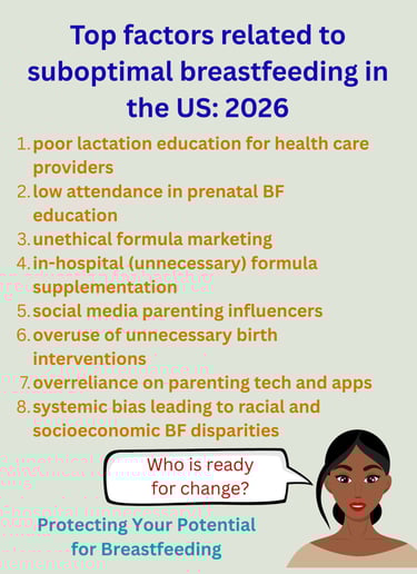 • Systemic inequalities, leading to breastfeeding disparities based on race and socioeconomic status.